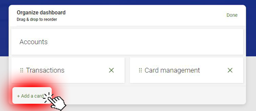 - If you do not have this card on your dashboard, scroll to the bottom of your dashboard and select the “Organize Dashboard” button.